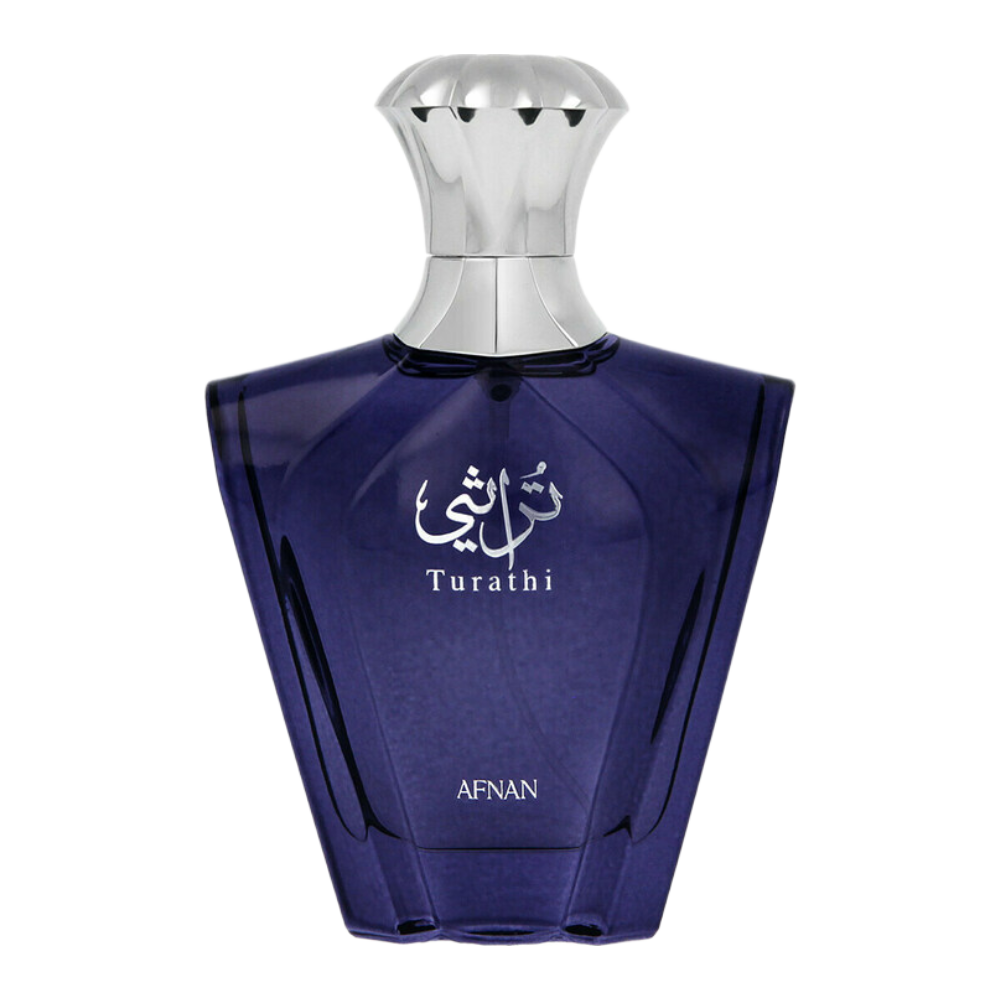 Nakon što se prvobitni udar grejpa smiri, miris prelazi u toplu kombinaciju ambera i drvenih nota, stvarajući svežu i blago začinjenu srž. Kasnije mirisu se pridružuju pačuli i mošus, koji mirisu daju dubinu, trajnost i privlačnost. Ovaj spoj drvenih i začinjenih tonova čini Turathi Blue elegantnim, a istovremeno živahnim i energičnim.