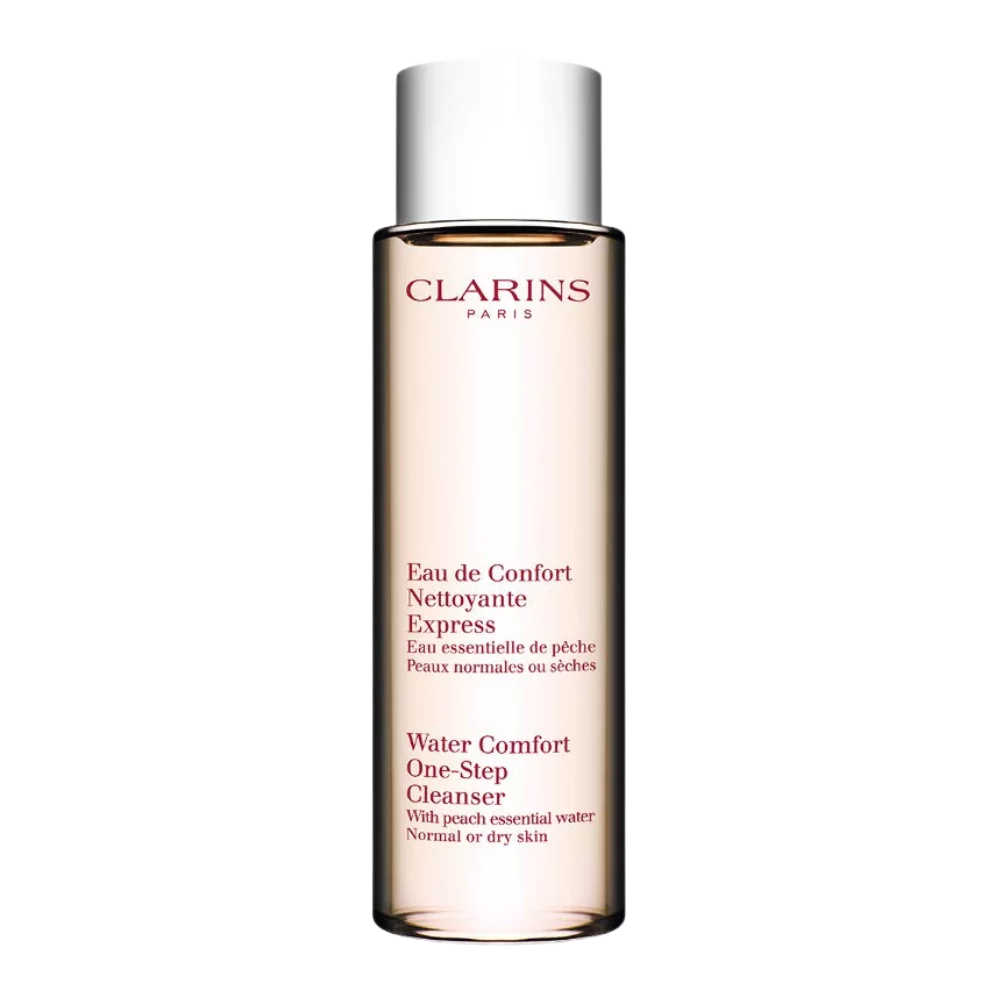 Clarins Water Comfort One-Step Cleanser sa esencijalnom vodom breskve čisti kožu bez potrebe za vodom – brzo, nežno i efikasno. Idealan je za sve koji žele jednostavno rešenje za osvežavanje tena u jednom koraku.