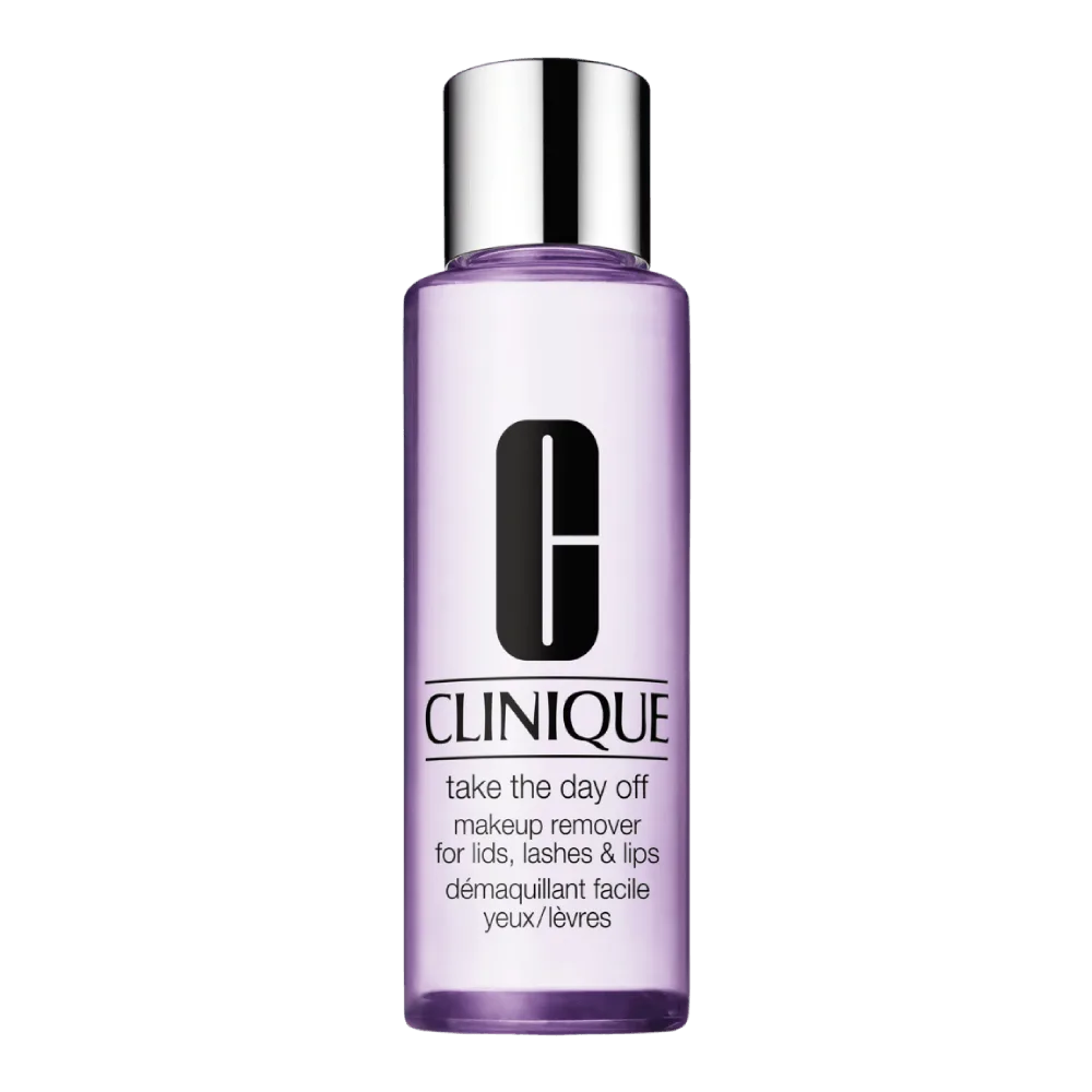 Clinique Take The Day Off dvofazni skidač šminke uklanja vodootpornu i dugotrajnu šminku sa očiju i usana bez iritacija. Pogodan je za osetljivu kožu i ne ostavlja masne tragove.