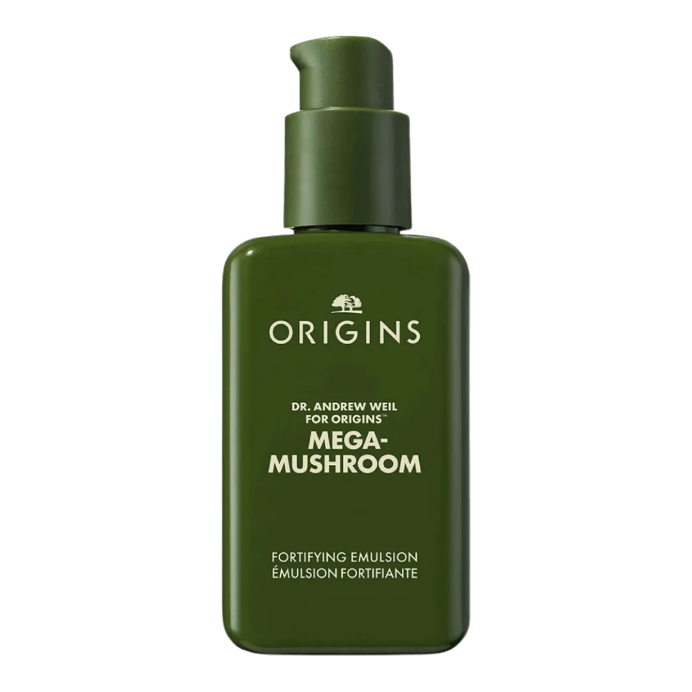 Origins Mega-Mushroom Fortifying Emulsion je lagana emulzija sa reishi gljivama i uljem pasjeg trna koja hidrira i jača zaštitnu barijeru kože. Namenjena je svakodnevnoj nezi za umirivanje i osveženje lica, vrata i dekoltea.